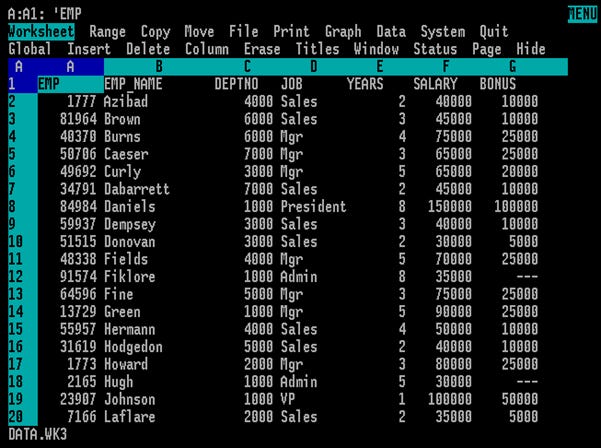 I started using VisiCalc https://en.wikipedia.org/wiki/VisiCalc on an IBM PC in the mid-1980s at Lehigh. When I arrived on Wall Street, Lotus 1-2-3 https://en.wikipedia.org/wiki/Lotus_1-2-3 and Lotus Symphony were standard. Since General Electric bought Kidder Peabody, they tried to force everyone to use Computer Associates SuperCalc 5 https://en.wikipedia.org/wiki/SuperCalc due to some sketchy security concern, but people kept surreptitiously using Lotus.