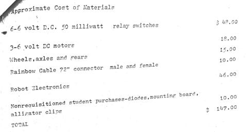We won first place and a $600 grant for Oley Valley High School, which inflates to $2,079 in today’s money. The project cost was $147, which is $509 in today’s money. The biggest single line item was for the super-fine motor relays that could be triggered off the game port DIP plugs: