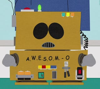 Side note: When I first saw South Park’s “A.W.E.S.O.M.-O” episode, I did a spit take because it took me right back to “Apatron”: